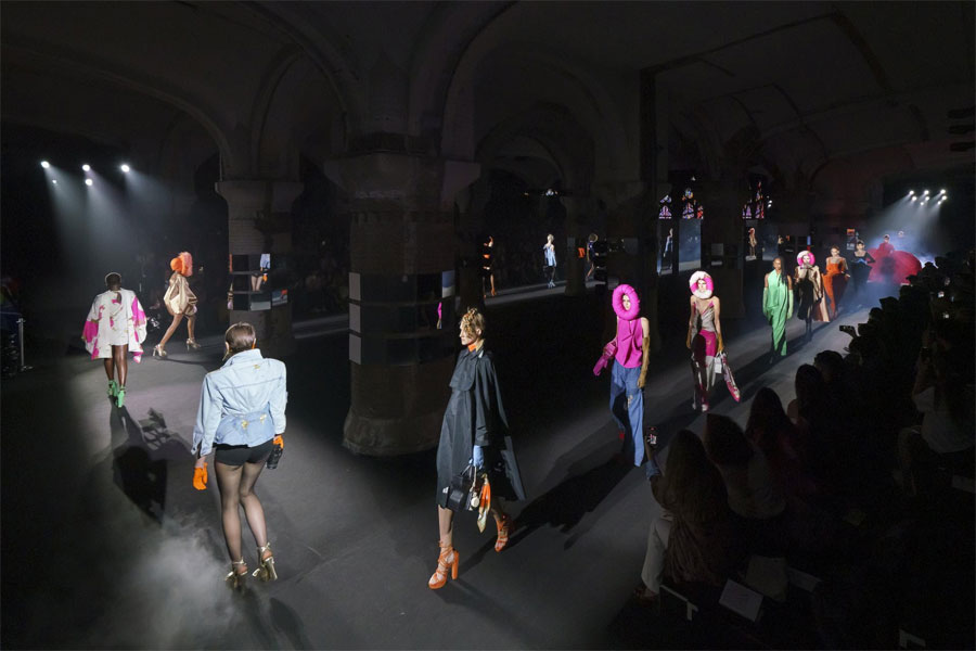 - Miguel Marín con su firma Larhha. Argumentación: cómo era la «construcción» de trajes mientras se levantaban los pilares y vitrales de la Santa Capilla de París. Ha reutilizado tejidos sobrantes de colecciones anteriores, y materiales y piezas rescatadas de armarios y tiendas de segunda mano.
