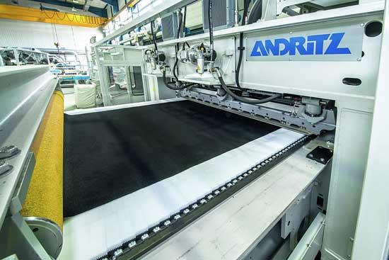 Tecnología de procesos en productos técnicos. Gracias a su experiencia en varios métodos de procesamiento y fabricación para la industria de no tejidos, Andritz también cuenta con un portfolio de maquinaria para la producción de no tejidos técnicos: «wetlaid» para productos con base de fibra de vidrio (como cubiertas de paredes, materiales para techos o baldosas de alfombra); «spunjet» para filtración y sustratos de revestimiento; y punzonado para geotextiles, productos de aislamiento o materiales básicos para el sector del automóvil.