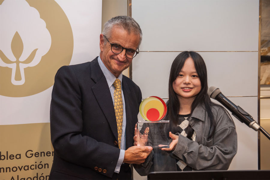 El Jurado ha concedido el Primer premio a la Innovación, dotado con 4.000 euros, a Maria Álvarez Bravo, por su trabajo «Estudio de la degradación de fibras textiles recicladas utilizadas como refuerzo en compuestos de base cemento».