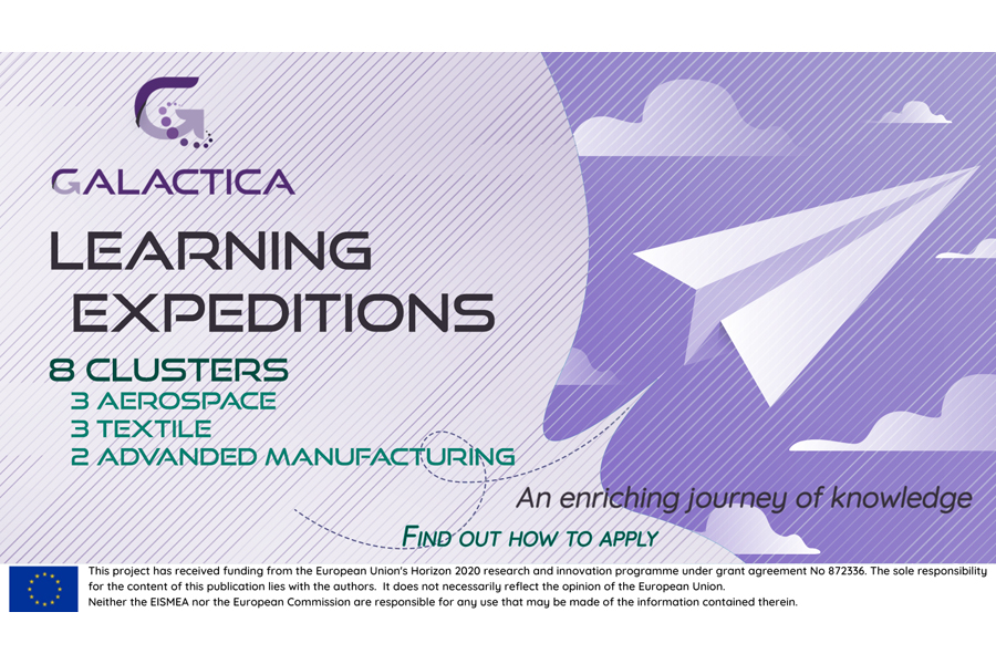 Este mes de julio, el programa Galactica ha abierto plazo de registro para ocho expediciones de aprendizaje que llevará a cabo para los tres sectores prioritarios de su ámbito de interés: textil, aeronáutico/aeroespacial y fabricación avanzada. Paralelamente se han abierto las primeras cuatro convocatorias de ayudas de viaje para participar en las mismas, mediante expresiones de interés.