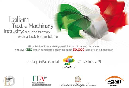 Del 20 al 26 de junio Barcelona acogerá la feria internacional de maquinaria textil ITMA 2019. En esta edición, la industria de maquinaria textil italiana tendrá una presencia importante al representar el primer país en número de empresas expositoras (360) y en área de exposición ocupada (30.000 m2).