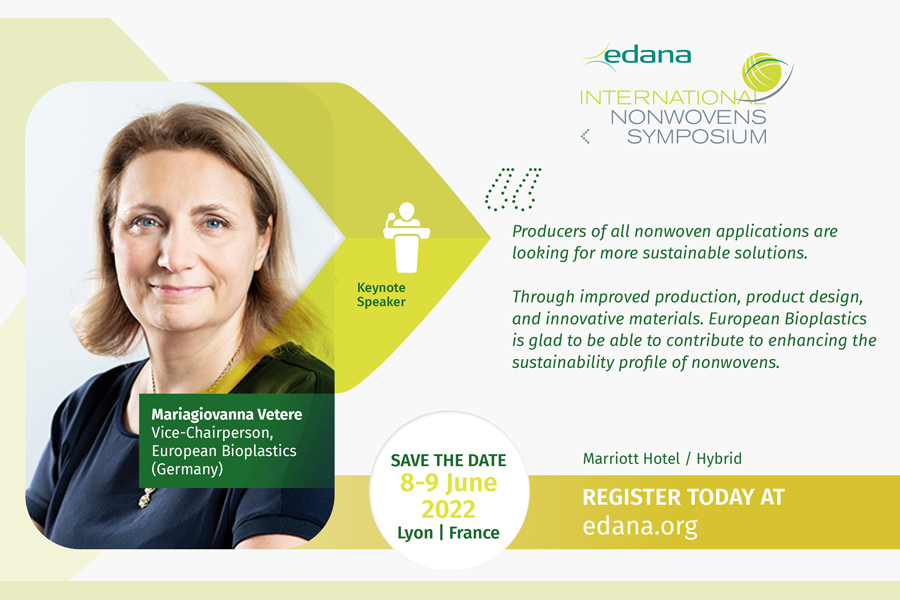 Habrá dos discursos inaugurales, uno en cada jornada. En el primero, el 8 de junio, la vicepresidenta de European Bioplastics, Mariagiovanna Vetere hablará del mercado de los bioplásticos y las soluciones sostenibles que existen para los no tejidos, a través de una producción mejorada, diseño de productos y empleo de materiales innovadores. Seguirá una sesión precisamente sobre sostenibilidad, incluido el diseño sostenible de productos higiénicos absorbentes. En el Simposio se mostrarán innovaciones como polímeros antimicrobianos, nuevos aglutinantes de látex, fibras de líber y PHA.