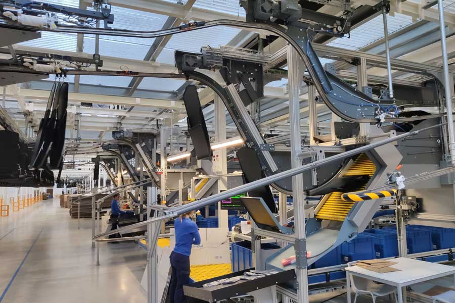 Es el primer sistema de Ferag en el que se pone en práctica un concepto de este tipo con un sistema integrado para artículos doblados y colgados. Una de las principales bazas para la preparación de pedidos en Mayoral es que cada bolsa puede recibir a la vez varios artículos de un pedido. Así, aumenta el rendimiento general del sistema y se reduce la carga de trabajo en la tecnología de transporte.