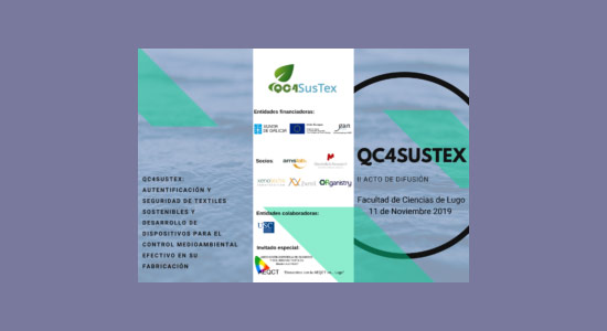 Para el 11 de noviembre, la sociedad lucense Applied Mass Spectrometry Laboratory, SLU, en breve y como nombre comercial ASMlab, ha convocado, bajo el título «Verificación de la moda sostenible», una Jornada sobre Sostenibilidad, que será el segundo acto de difusión del proyecto de investigación QC4Sustex. Tendrá lugar en la Facultad de Ciencias de Lugo. Y, junto al título ya indicado, otro más extenso: «Autenticación y seguridad de textiles sostenibles y desarrollo de dispositivos para el control medioambiental efectivo en su fabricación».