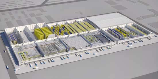 El centro, diseñado a medida por SSI Schaefer, consiste en un área de Miniloads con 338.400 ubicaciones para contenedores, un almacén automático a gran altura (HBW) con 10.608 ubicaciones para pallets y un sistema de almacenaje manual con 240.000 ubicaciones. En los Miniload (Schaefer Miniload Crane, SCM) se garantizan unos procesos de almacenaje y desalmacenaje eficientes, mientras que los transelevadores en el HBW consiguen una optimización vertical del uso del espacio de almacenaje. También se han instalado 62 carruseles (Schaefer Carousel System, SCS) que, conectados con las estaciones de preparación de pedidos de alto rendimiento (Pick-to-tote), crean una solución combinada de almacenamiento y picking.