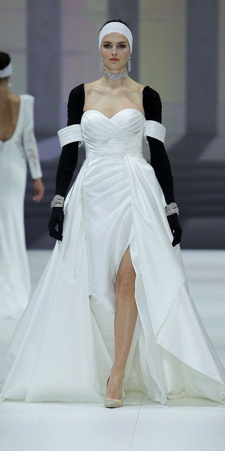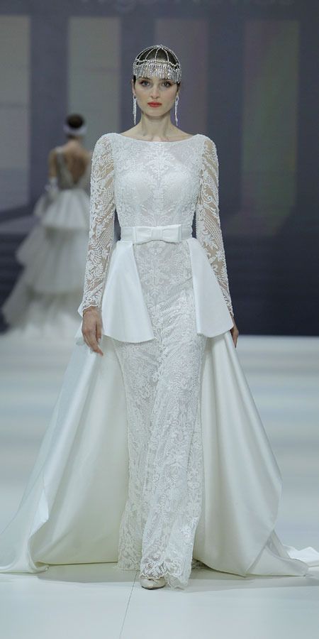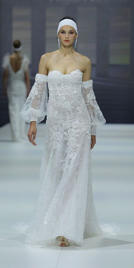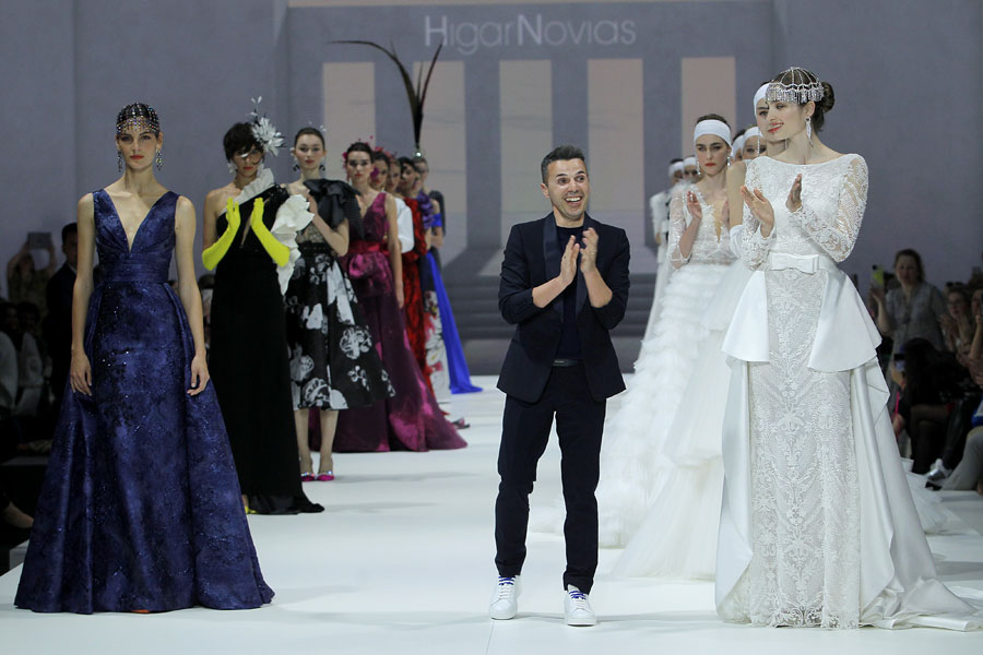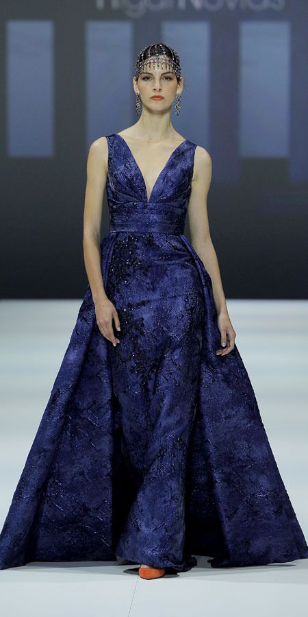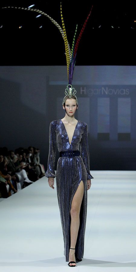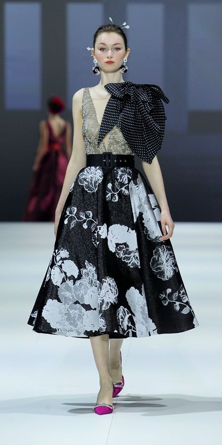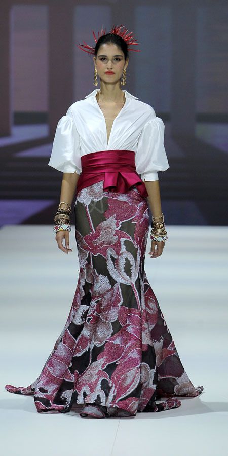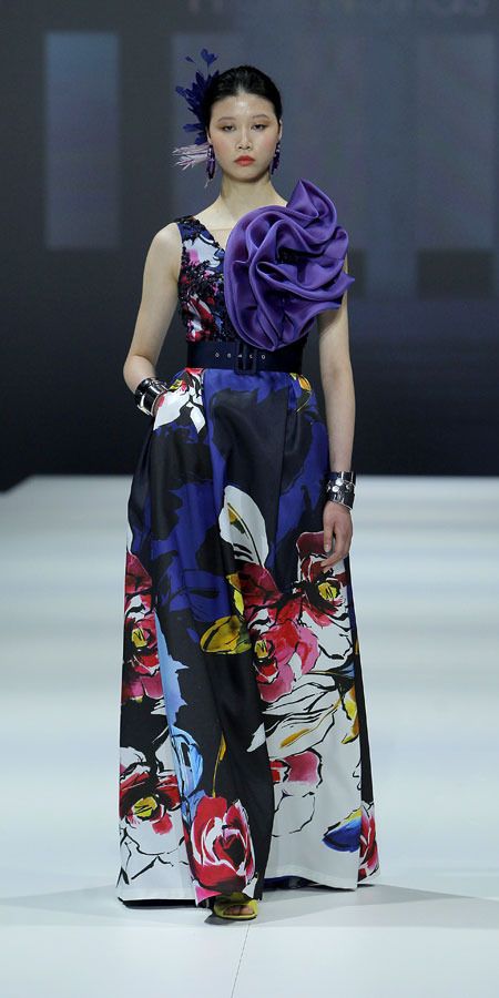 Maxi estampados y bordados se combinan con una paleta de vivos colores. Destaca la pedrería en cuerpos escotados y siluetas sirena muy femeninas, en un universo sofisticado y contemporáneo. (Descripción del autor/a y BBFW).