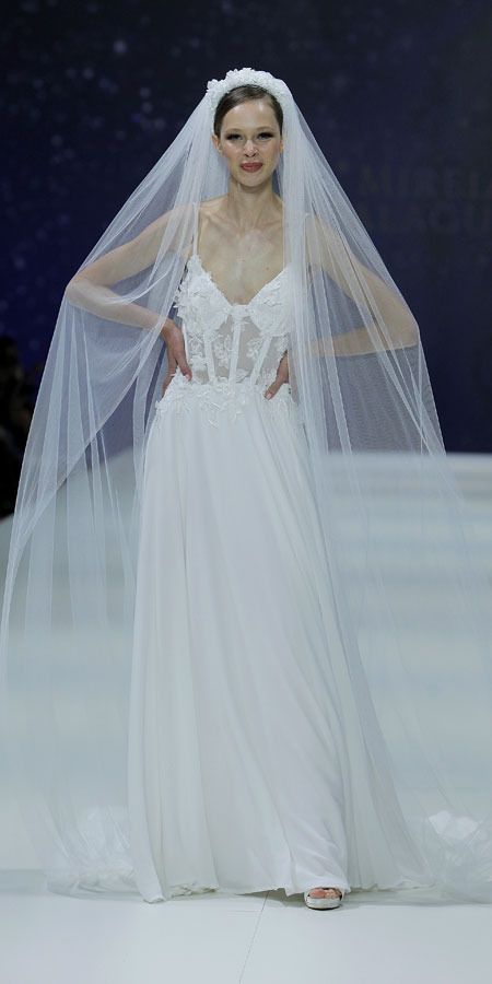 Tules y transparencias asumen el protagonismo junto a los característicos bordados de la diseñadora catalana. Diseños llenos de personalidad con aire fresco romántico. (Descripción del autor/a y BBFW).