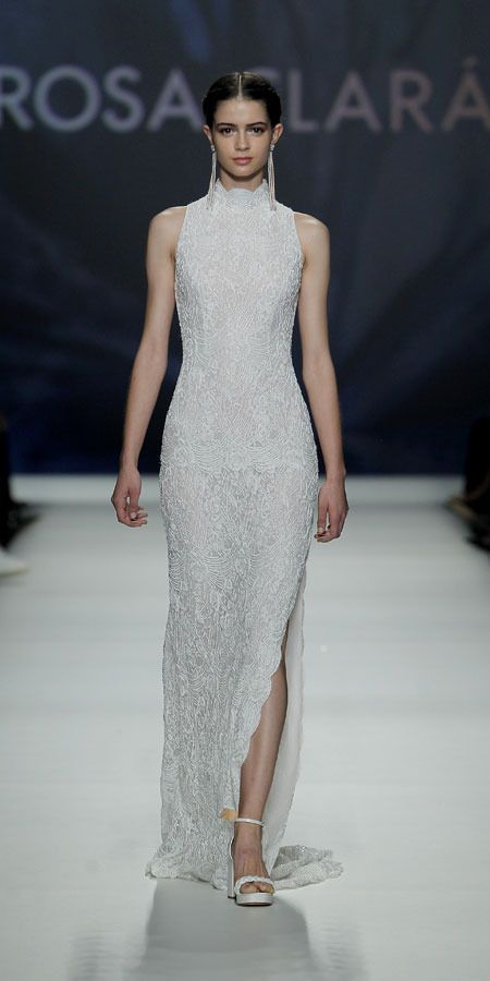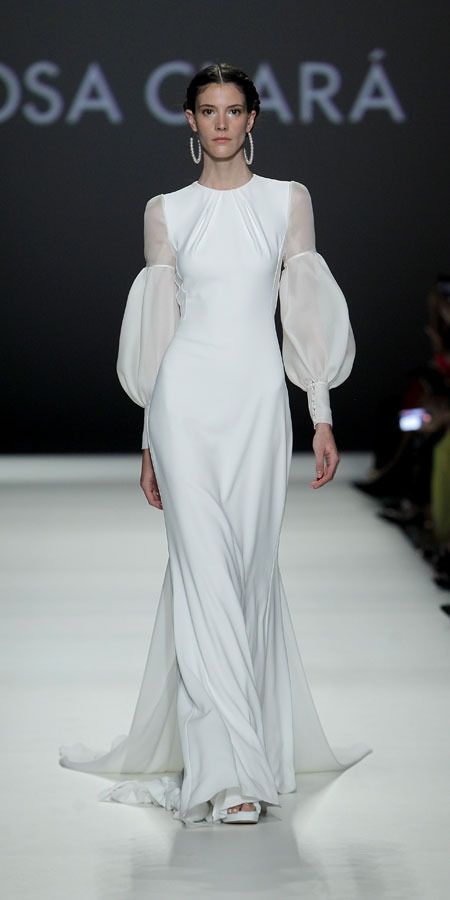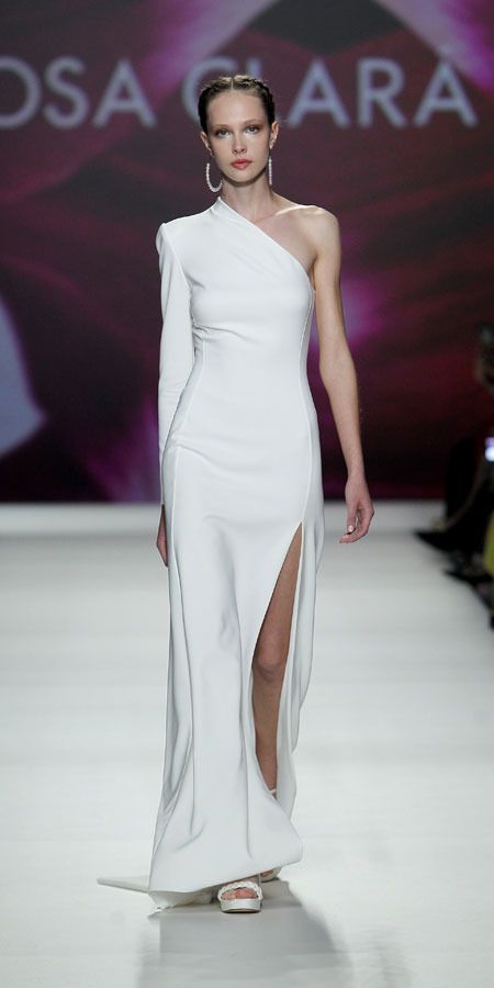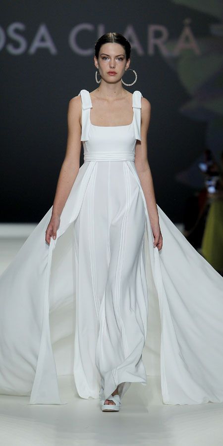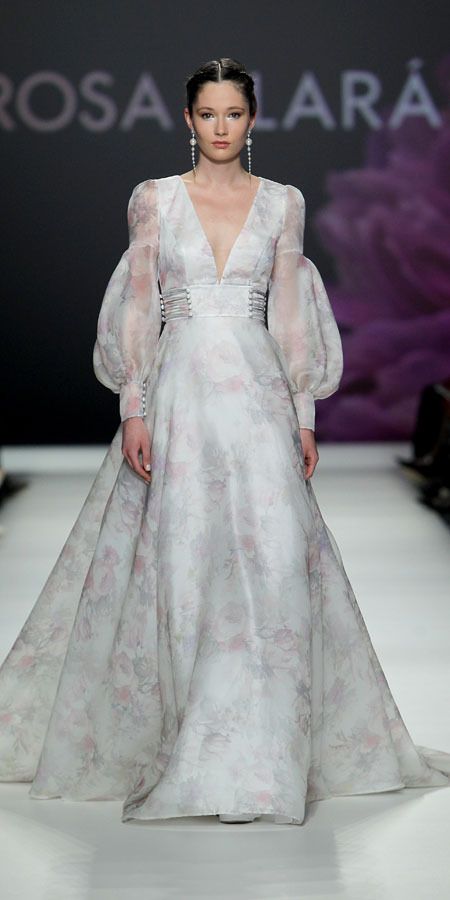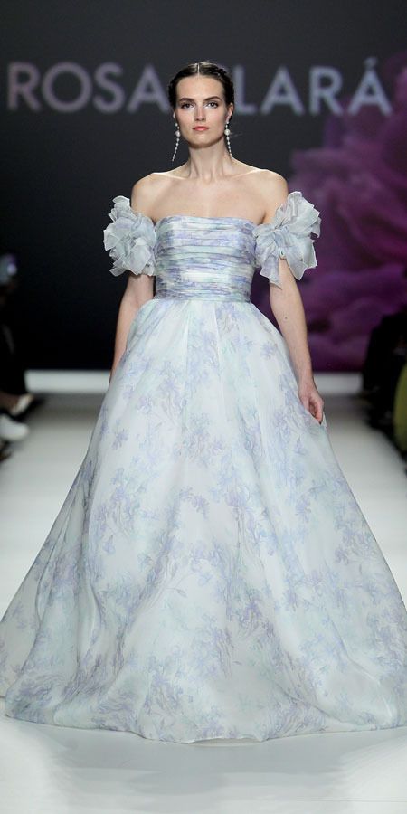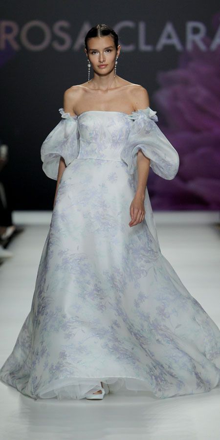Una apuesta por el multilook con tul flocado y bordado, palabra de honor, mangas extraíbles y sobre faldas de crepe y organza. Tonos malva y rosa con organza de seda, estampado o pintado a mano como protagonista. Líneas puras, patrones elegantes y acabados de alta costura. (Descripción del autor/a y BBFW).