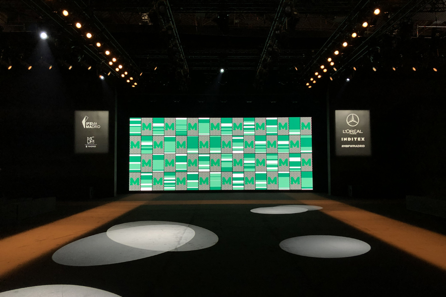 Como fondo de la pasarela, esta enorme pantalla permite una mejor visualización del evento.
