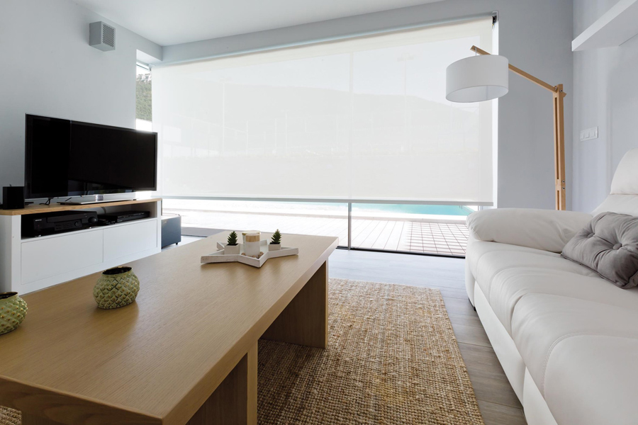 —Estores enrollables: «gracias a su funcionalidad y a una infinita colección de tejidos y accesorios constituyen el sistema más versátil». Menciona su modelo Vision, que controla la luz superponiendo bandas horizontales opacas alternadas con otras transparentes, lo que permite un control total tanto de la luminosidad como de la privacidad. Y el modelo Glass, un sistema enrollable que se integra perfectamente sobre la ventana y favorece un total aprovechamiento del espacio, ideal para ser instalado en cualquier tipo de ventana.