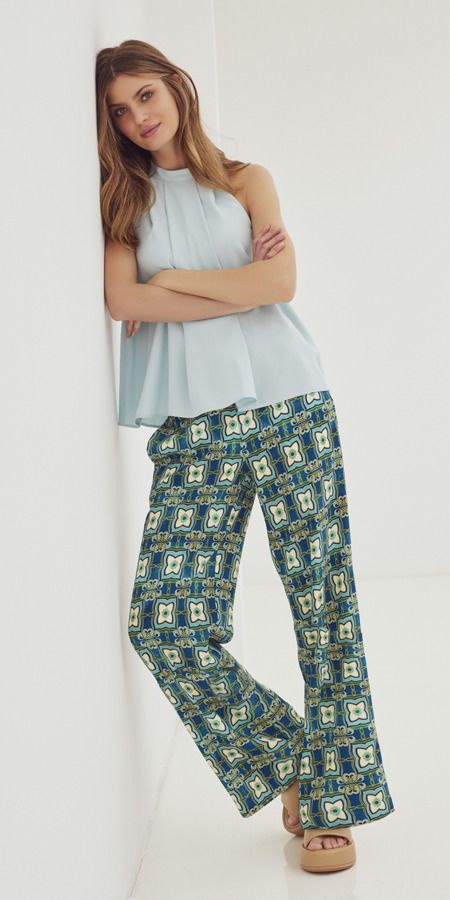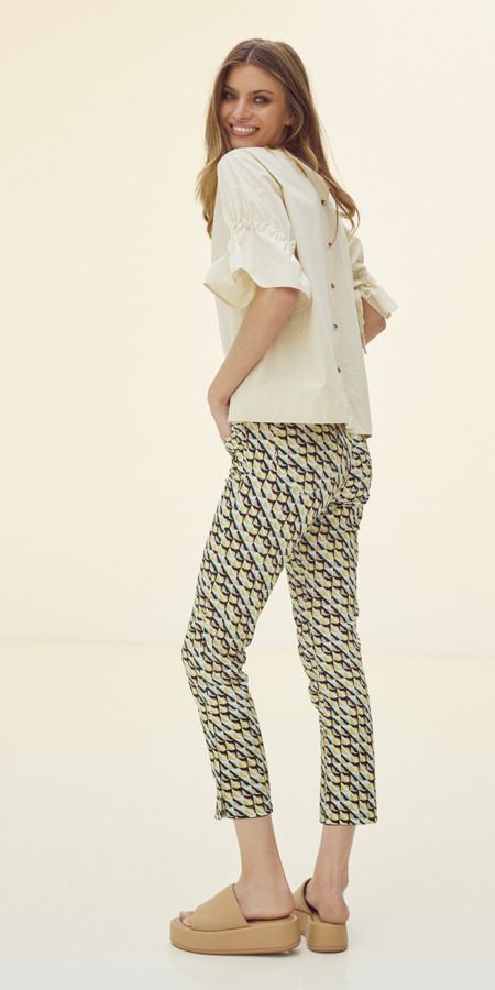 Unas alegres mariposas se han posado sobre los pantalones: ¡un diseño perfecto para el verano! Las rayas marítimas, a veces estampadas con flores, evocan las vacaciones en el mar. Los diseños grandes de cadenas en combinaciones de colores modernos aportan al look clásico una actualización de moda.