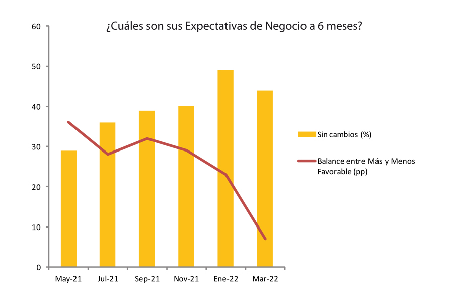 En promedio, en todas las regiones y todos los segmentos, la situación comercial en marzo de 2022 se mantiene en territorio positivo, con +14 puntos porcentuales.