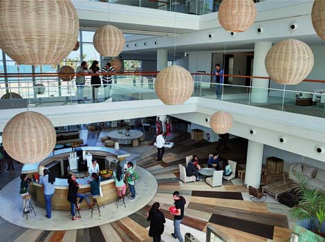 En la sede de Desigual todos los espacios son abiertos y diáfanos, y en ellos se establecerá una nueva forma de trabajo por la que ningún empleado tendrá un puesto fijo, para fomentar el intercambio de conocimientos y la autodisciplina y responsabilidad.