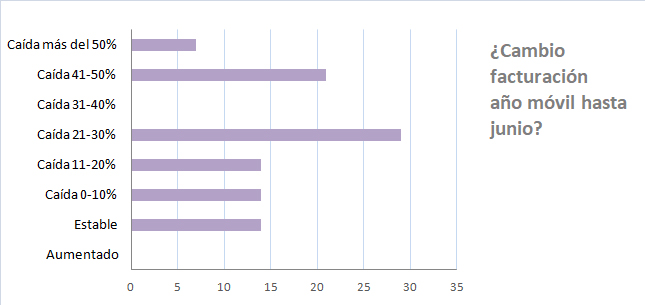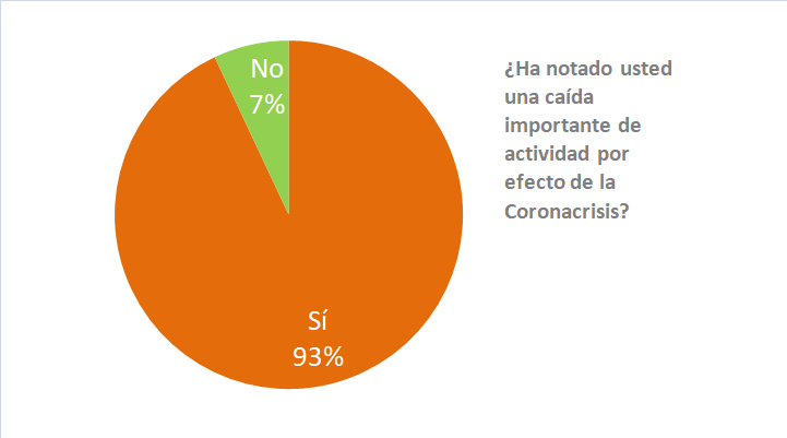 Un admirable 7% de los consultados no experimentaron una caída importante de actividad, por efecto de la «coronacrisis». El resto, sí. La mayoría, un 29% de los consultados, anotaron una caída de entre un 21 y un 30%. Para algunos la cosa fue más grave: un 21% anotaron una caída del 41 al 50%, y para un 7% el descenso de facturación fue superior al 50%.