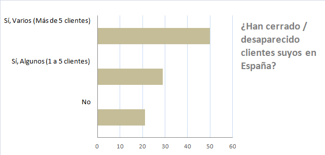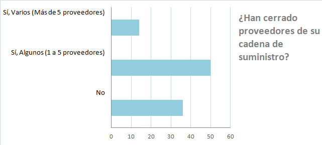 Un 64% de los encuestados han perdido proveedores porque han cerrado. En un 14% de los casos, más de cinco proveedores.