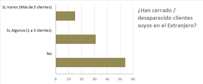 Es mayor el porcentaje (79%) de quienes han perdido clientes en España por igual razón (cierre), pero solo un 46% han perdido clientes en el extranjero.