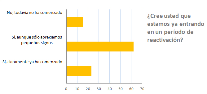 La situación estaba ya mejorando en el verano. Para un 23% de los encuestados, la reactivación ya había comenzado de manera clara, y para un 62% de manera tímida.
