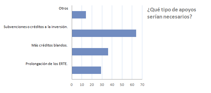 ¿Qué tipo de ayudas? De todo tipo, pero sobre todo subvenciones o créditos a la inversión (64%), seguidos por créditos blandos y por prolongación de los ERTE.